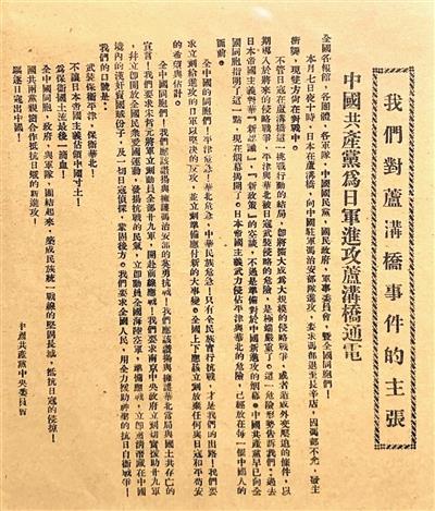 △《中國共產黨為日軍進攻盧溝橋通電》