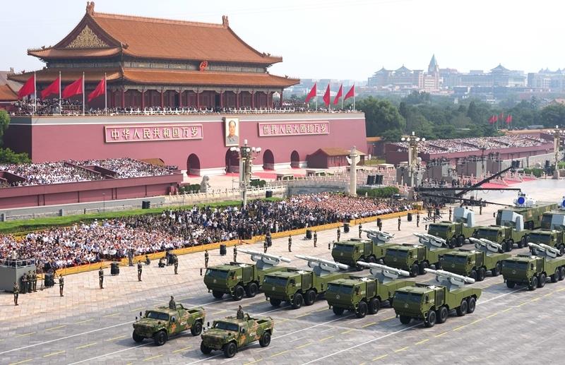 △2025年9月3日,紀念中國人民抗日戰爭暨世界反法西斯戰爭勝利80周年大會在北京隆重舉行。這是艦載防空武器方隊接受檢閱。