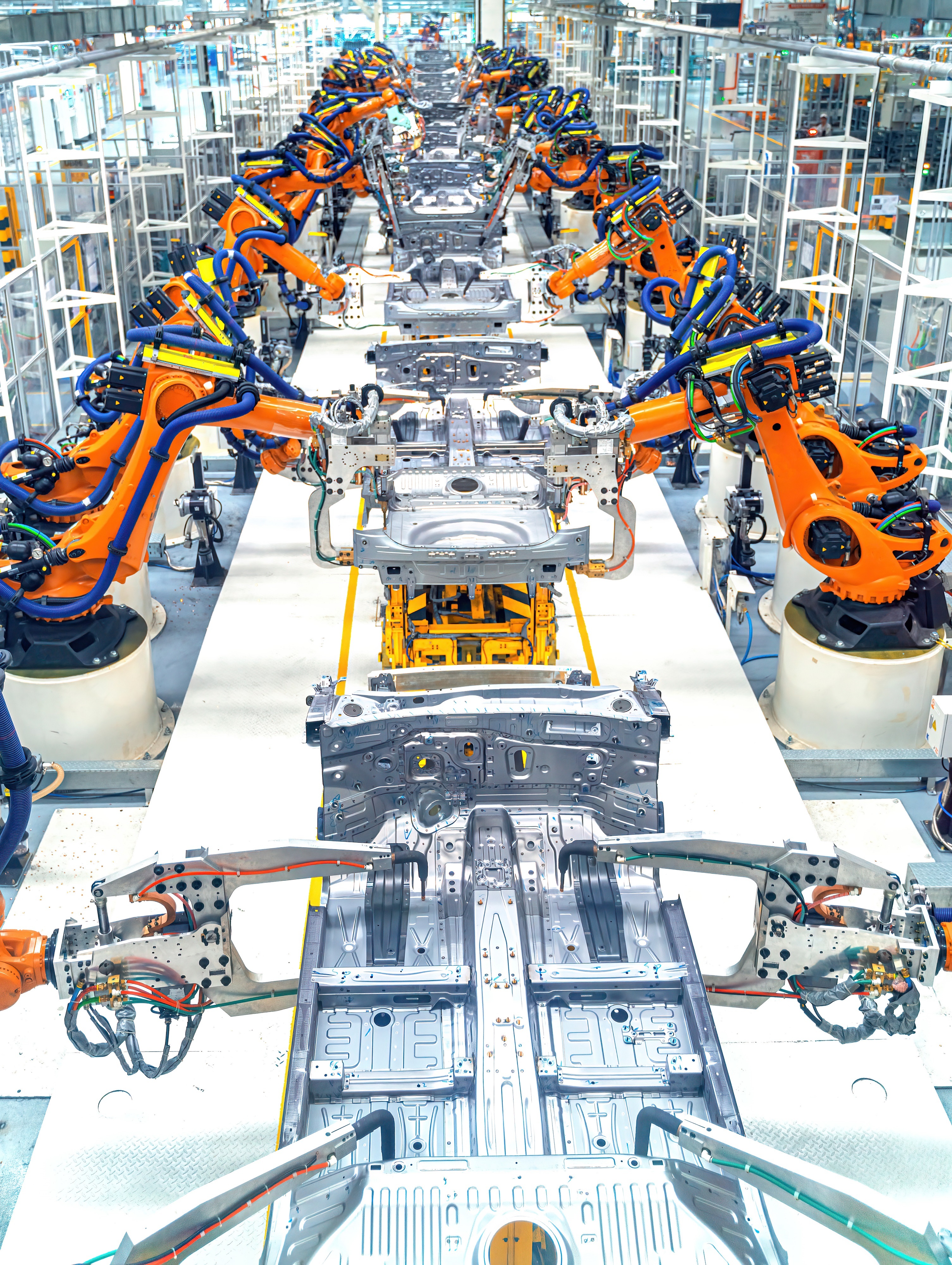 △ 現代化的汽車制造廠焊接裝配線。(圖/視覺中國)