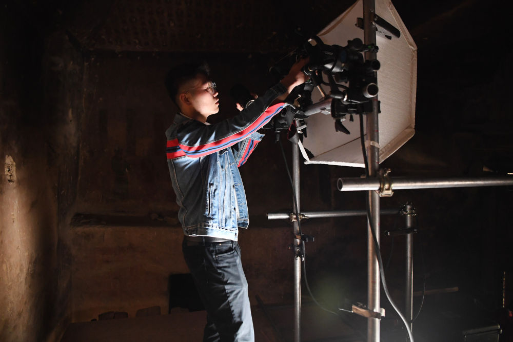 2023年4月25日,敦煌研究院文物數字化保護團隊圖像采集人員熊業騰在洞窟內調試設備,準備采集壁畫圖像。30多年前,敦煌研究院便嘗試以數字技術讓古老石窟“芳華永駐”。2016年,“數字敦煌”資源庫上線,首次向全球免費共享30個敦煌石窟的高清圖像和全景漫游,用戶足不出戶就能欣賞到高清的敦煌文化數字資源,目前訪問用戶遍布全球78個國家,累計訪問量超過2000萬次。