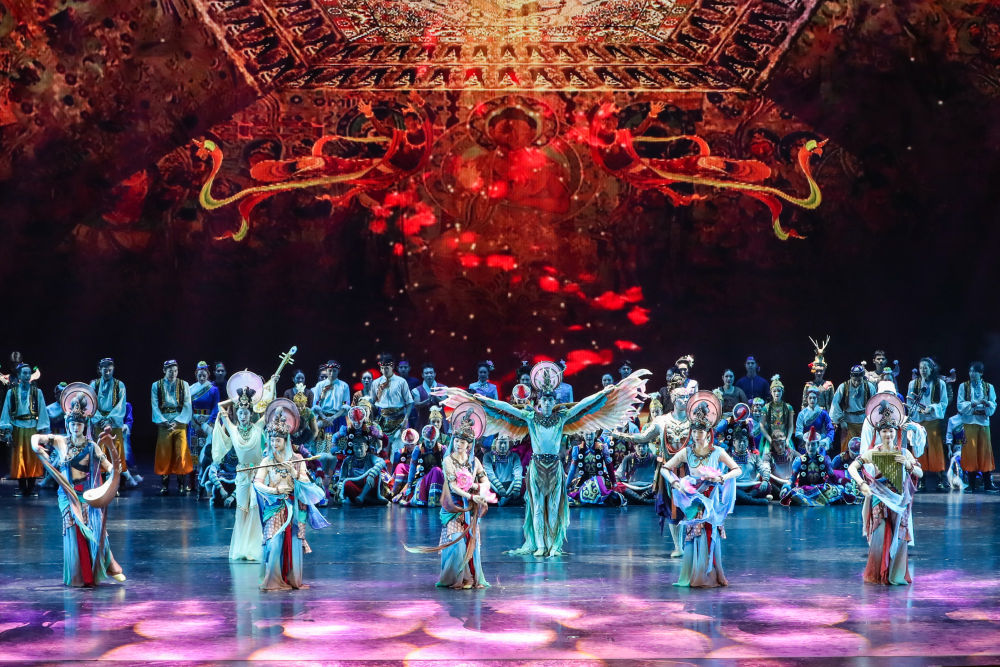 2025年9月20日,演員在敦煌大劇院表演新版《絲路花雨》。1979年,大型民族舞劇《絲路花雨》在中國西北誕生。編創者們從敦煌莫高窟的壁畫和彩塑中尋找靈感,將壁畫上凝固了千年的舞姿,轉化為動態舞蹈語言。40多年來,《絲路花雨》累計演出超4000場,足跡遍布40多個國家和地區,被譽為“中國舞劇的里程碑”和“活的敦煌壁畫、美的藝術享受”。此次新版歷經兩年半創排,通過復原與創新對經典藝術進行當代詮釋,彰顯了中華優秀傳統文化的生命力。